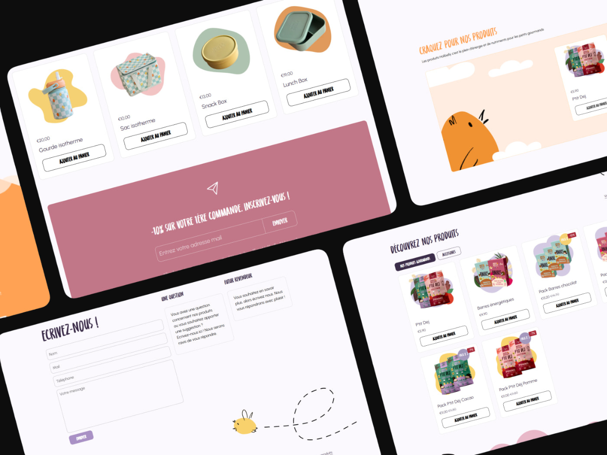 Phase 2 (Le Shop) : Transition vers une boutique Shopify complète. J'ai structuré le parcours client pour faciliter l'achat récurrent et la réassurance (avis parents, blog nutritionnel, carte des revendeurs bio).
