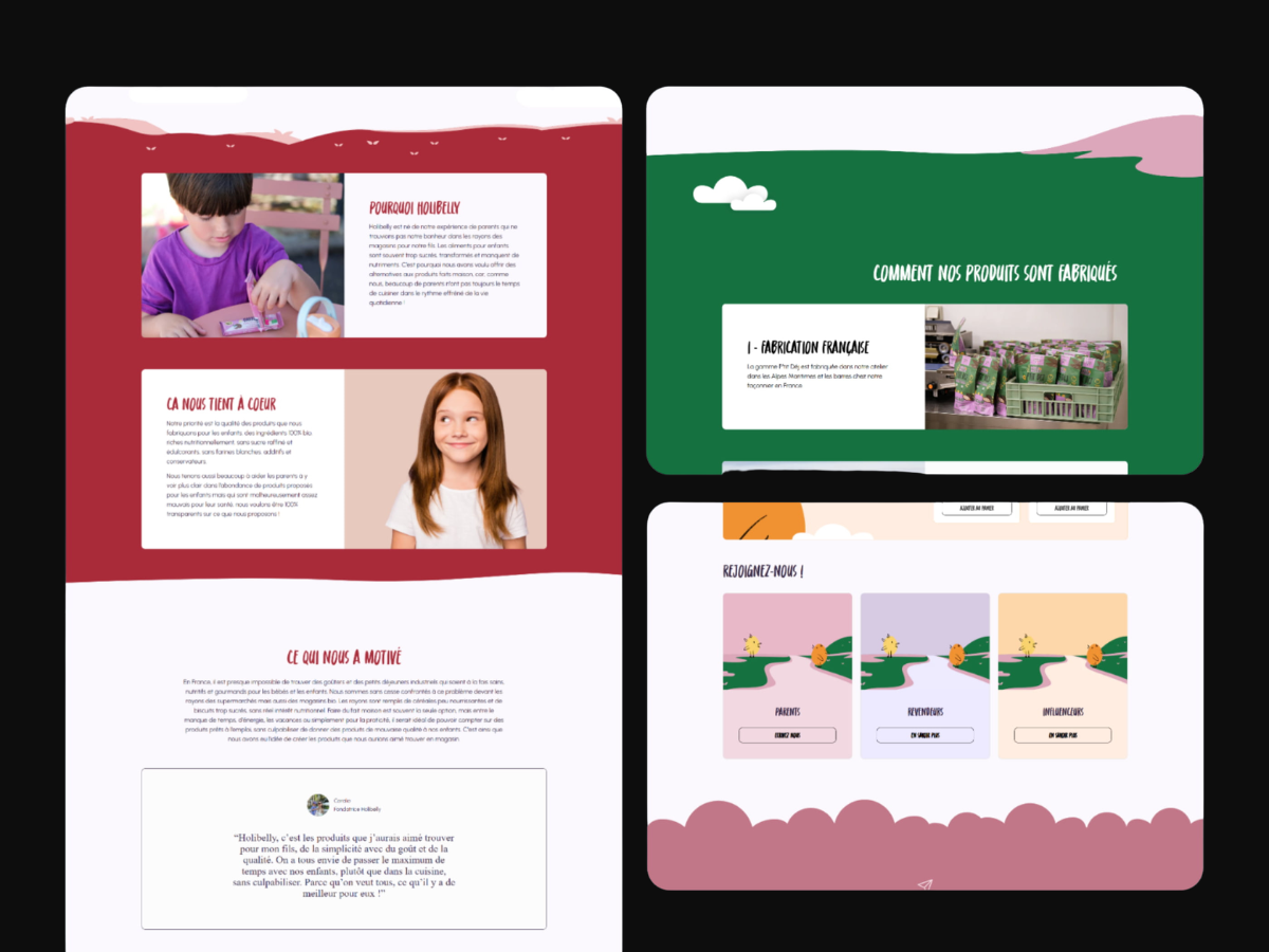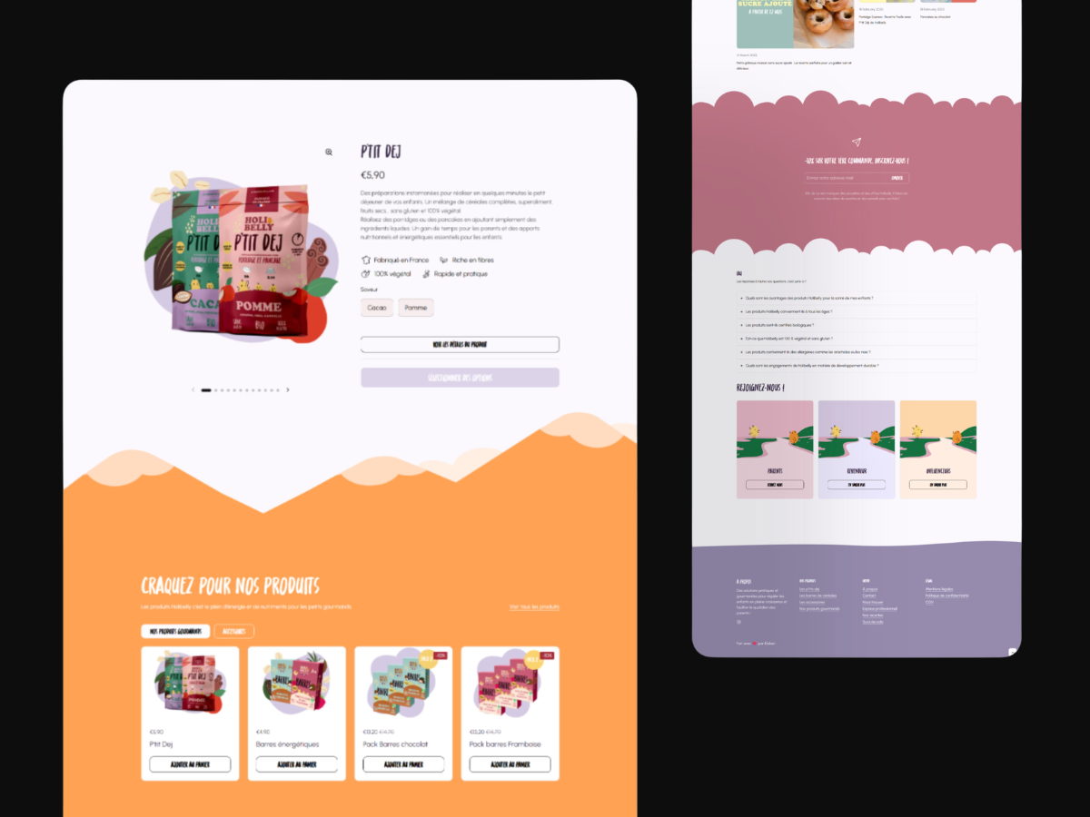 Custom CSS & Liquid : J'ai personnalisé le thème Shopify en profondeur via du CSS sur-mesure pour donner vie à l'identité visuelle d'Holibelly (couleurs vives, formes organiques, typographies pétillantes).