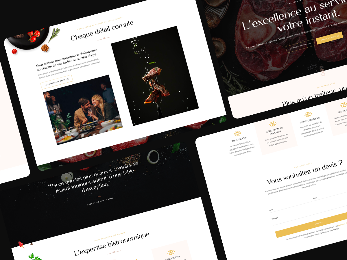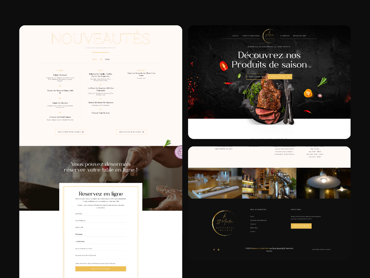 Suite au rachat et au succès fulgurant du restaurant Le Saint Martin (près de Lyon), le propriétaire a souhaité professionnaliser sa présence en ligne. Initialement pensé comme une simple vitrine, le projet a dû évoluer pour suivre la croissance de l'établissement : intégration des réservations, gestion du service traiteur et segmentation des offres.