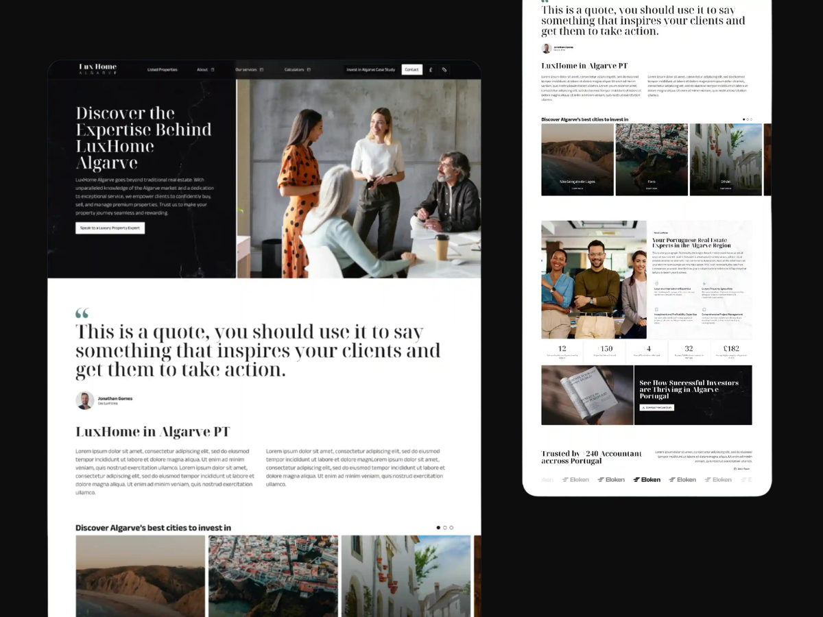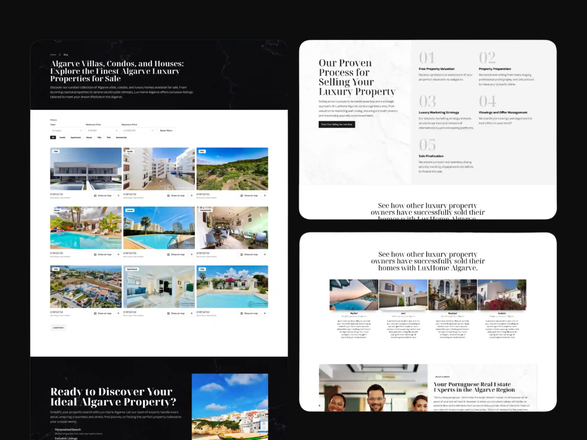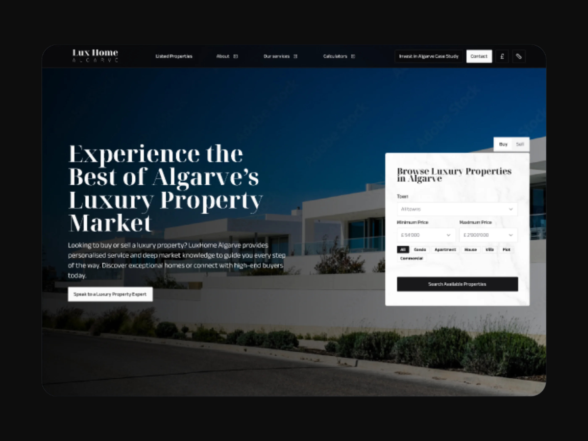 Le sud du Portugal est l'une des régions les plus prisées pour l'immobilier de luxe. LuxHome Algarve avait besoin d'une plateforme capable de rassurer une clientèle britannique exigeante et de se démarquer par une expertise visible et des outils concrets.